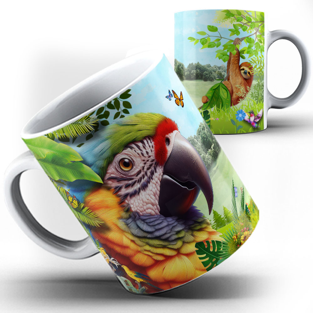 Caneca Brasil Arara Macaw tropical bicho preguiça 24