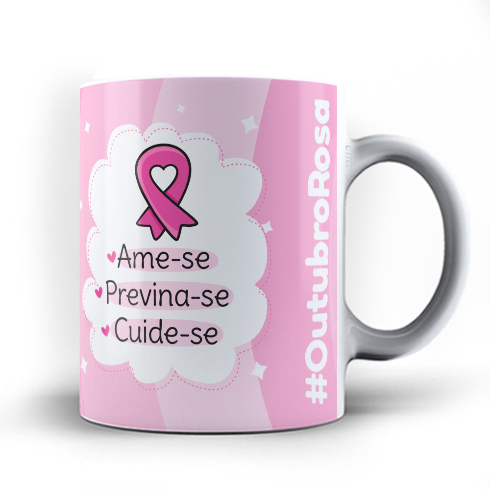 Caneca xicara Outubro rosa ame-se cuide-se 23